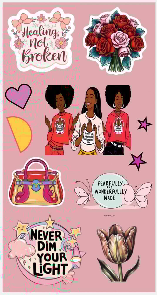 This sticker sheet is for the woman who knows that softness is power and surrender is strength. Add it to your collection as a daily affirmation of beauty, faith, and self-love.
