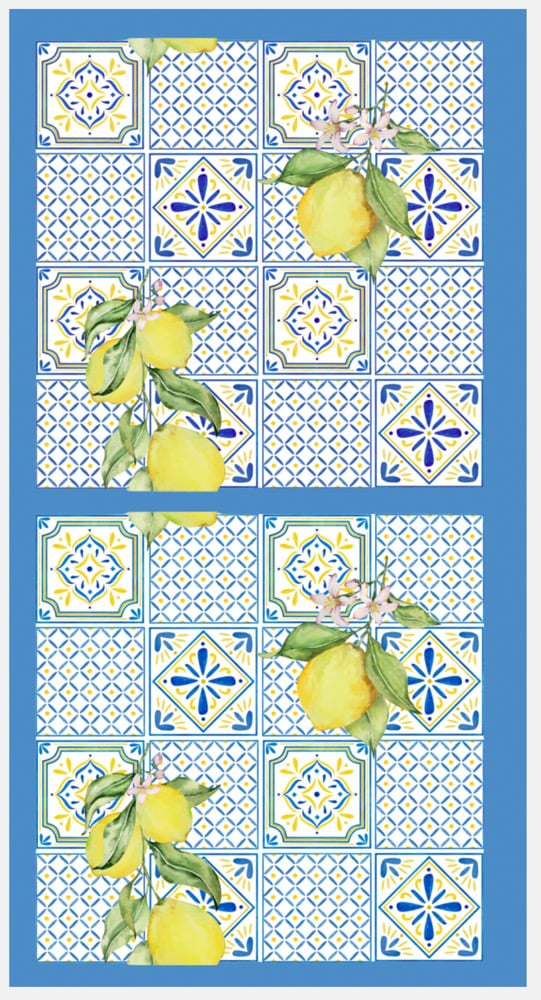 2 patterned lemon grove squares bursting with fresh fruit and floral charm