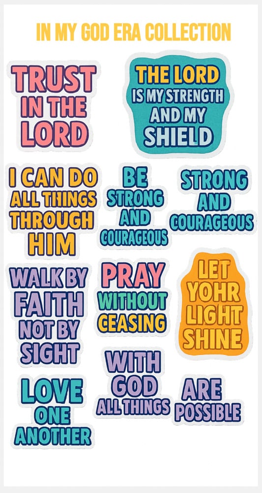 Faith-forward, colorful, and full of encouragement—this sticker sheet is part of our In My God Era Collection, made to uplift your spirit and style.