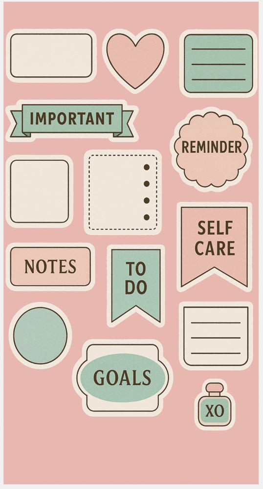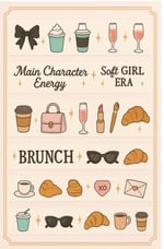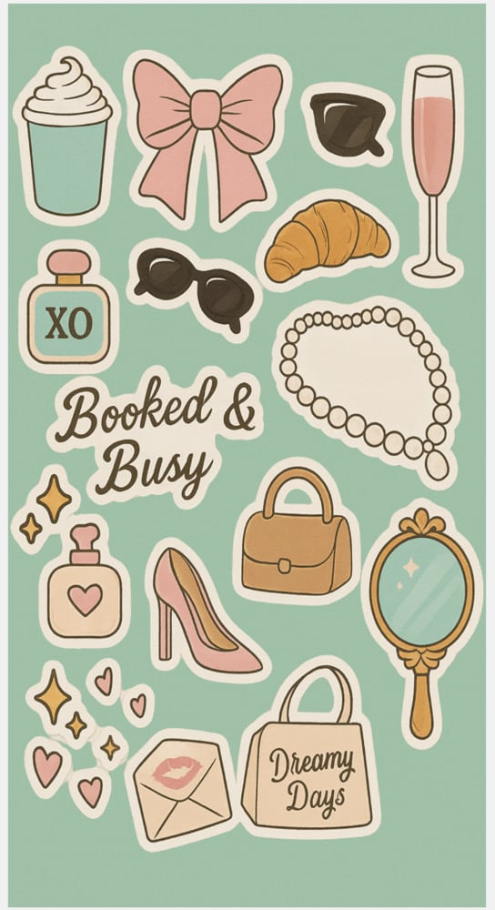 Whether you’re journaling your dreams, planning your glow-up, or just vibing through your to-do list, this sticker set adds a pop of soft luxe. Includes quotes like “I Bring In Residuals” to keep you in alignment with your abundance, and visuals like designer bags, whipped lattes, and girly glam essentials.