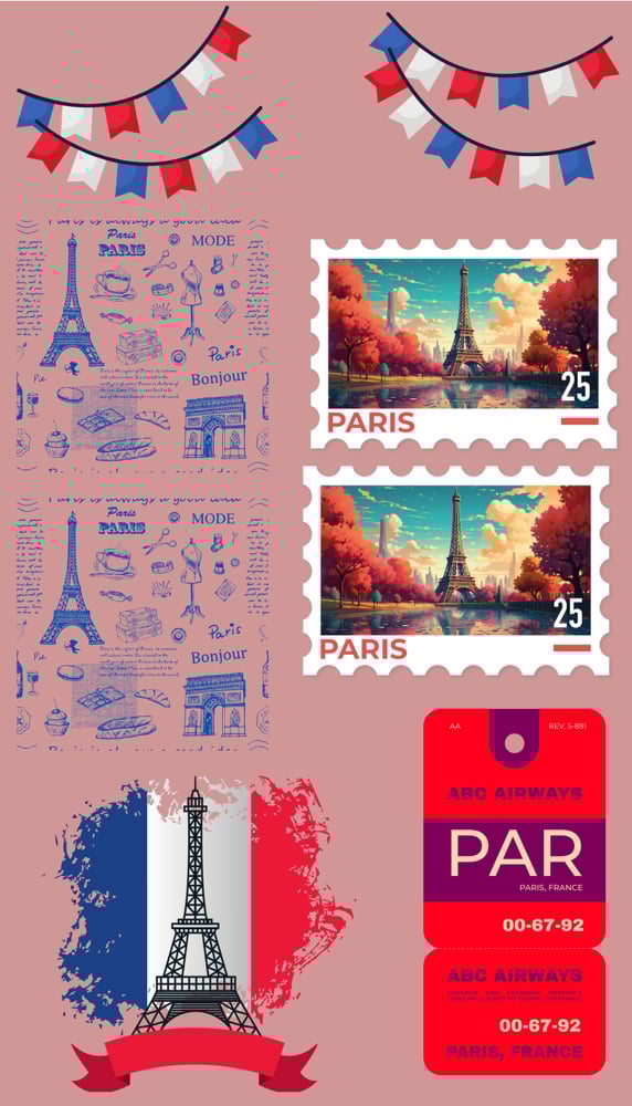 🗼💥 Bring that Paris Fashion Week energy straight to your planner or journal! This Paris Sticker Sheet features iconic vibes — from the Eiffel Tower and scooters to croissants and French flags — all drippin’ in red, white, and blue. Includes 2 sticker sheets. Perfect for journaling, scrapbooking, or adding some global drip to your daily hustle.